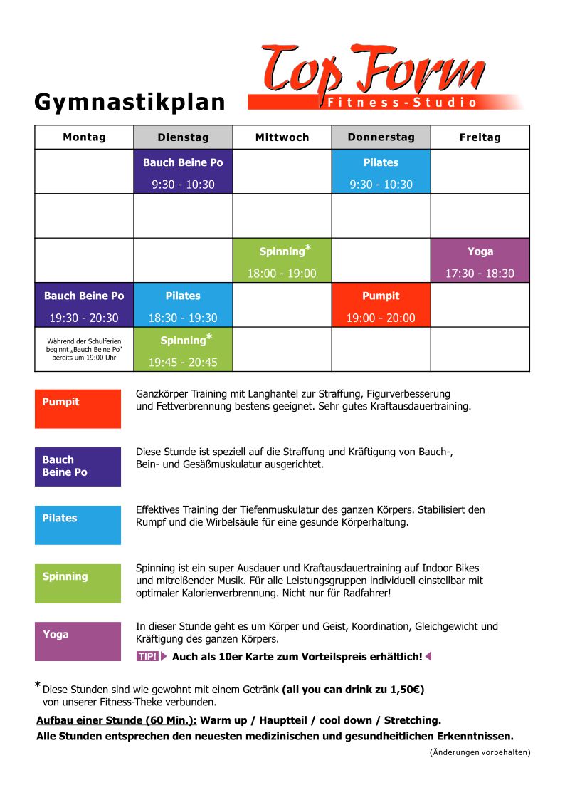 Unser aktueller Kursplan